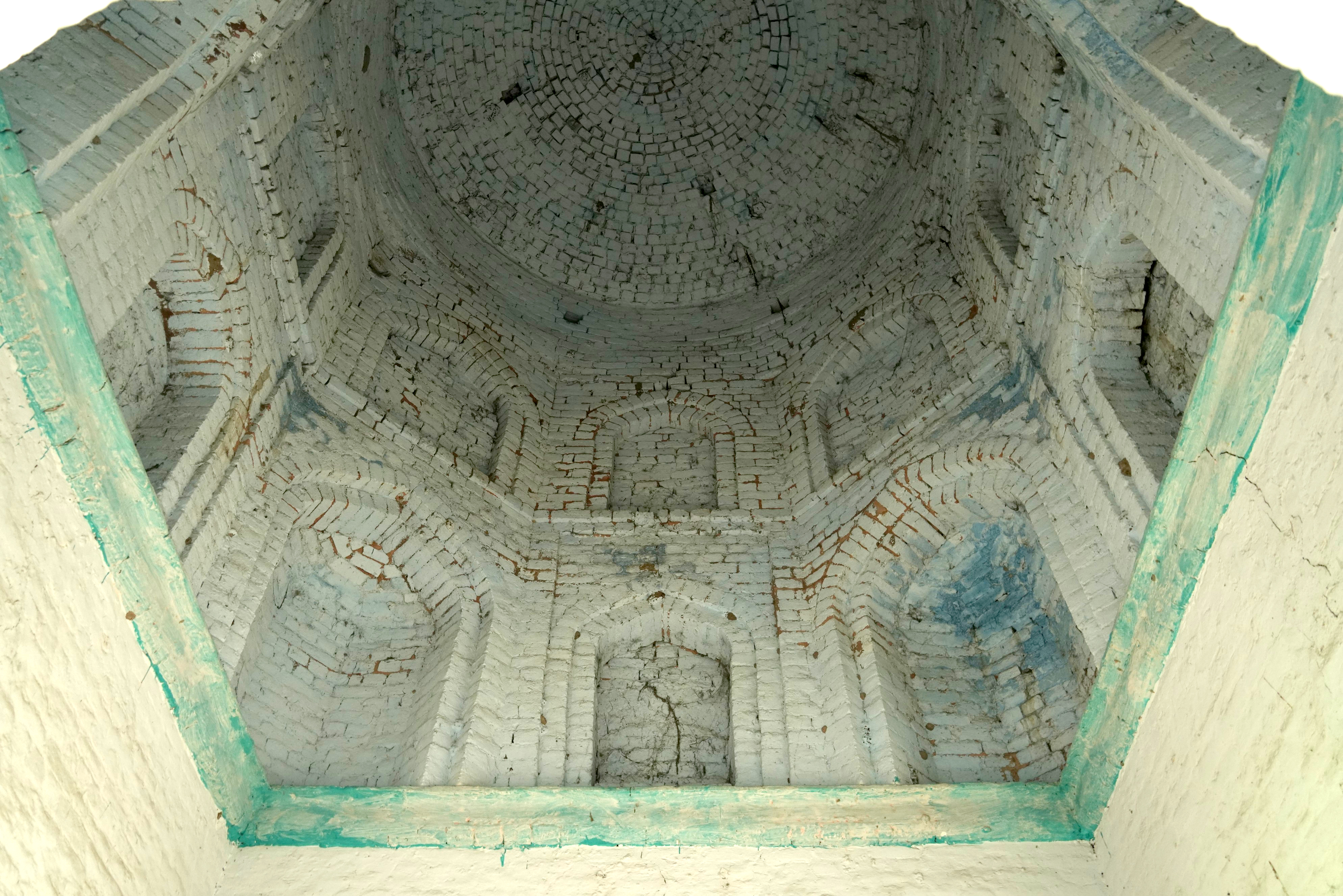The dome itself exhibits signs of incompletion. The groove around the base of the dome and the rough texture of the bricks in the internal section of the drum suggest that it was originally intended to be adorned with lotus motifs, a common decorative element in Sikh domes symbolizing purity and spiritual awakening. However, these embellishments were never realized, leaving the structure in a raw, unadorned state. This incompletion adds a layer of historical intrigue to the gurdwara, reflecting the interrupted narratives of the region's cultural and religious heritage.