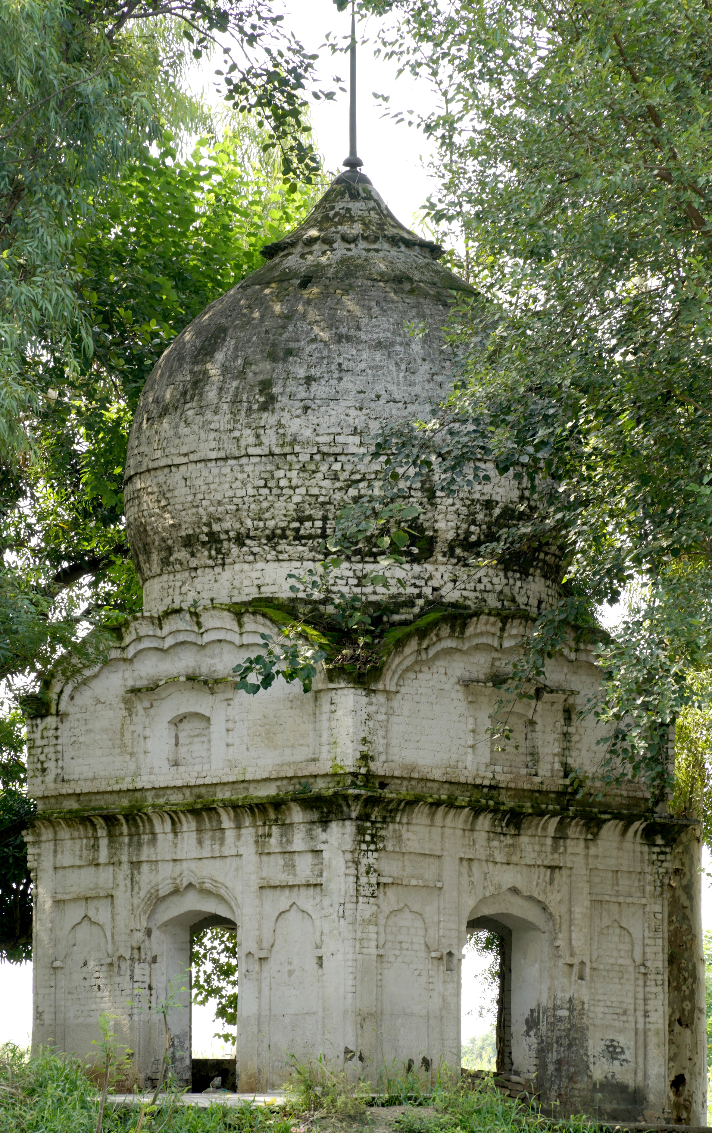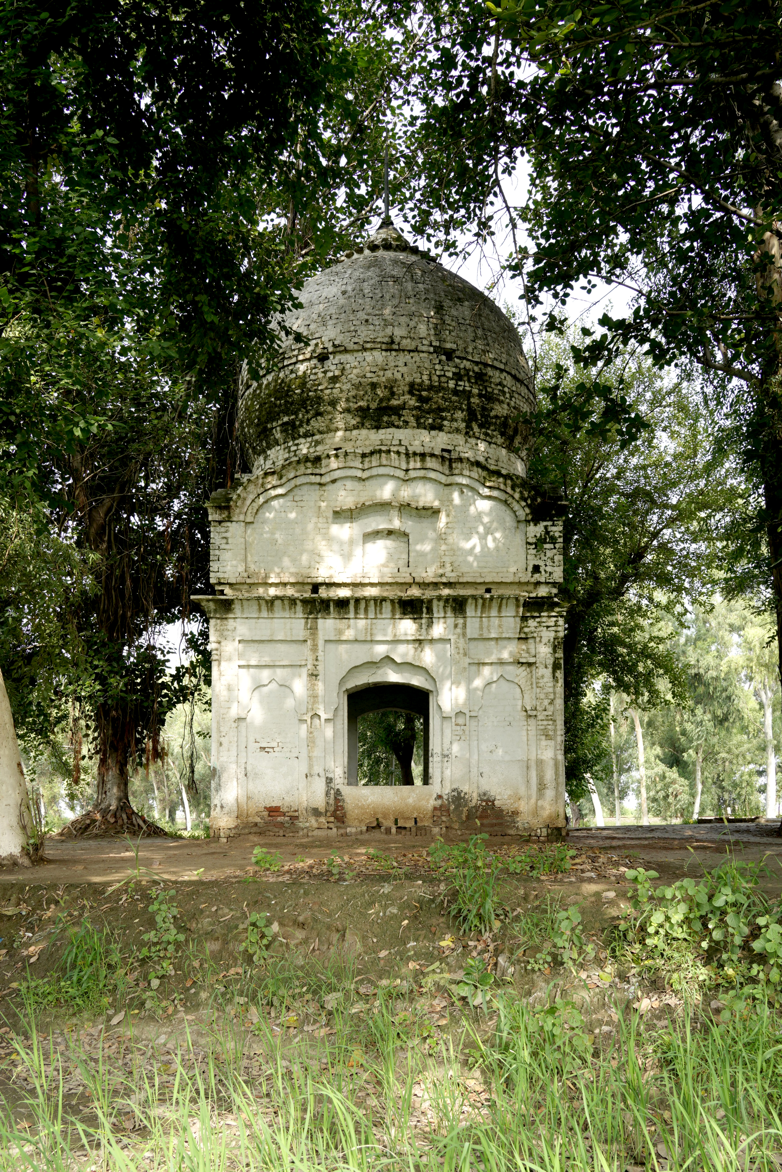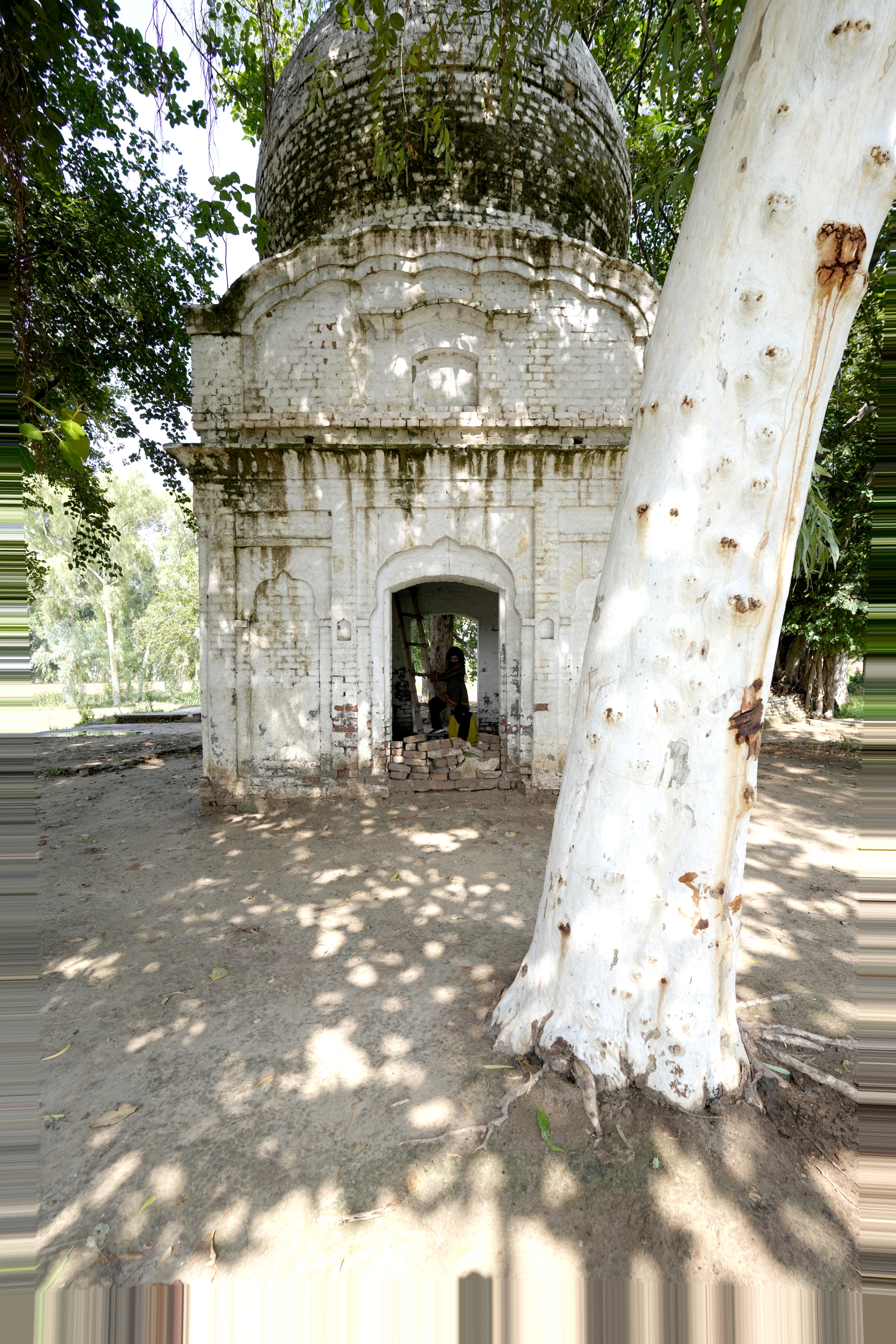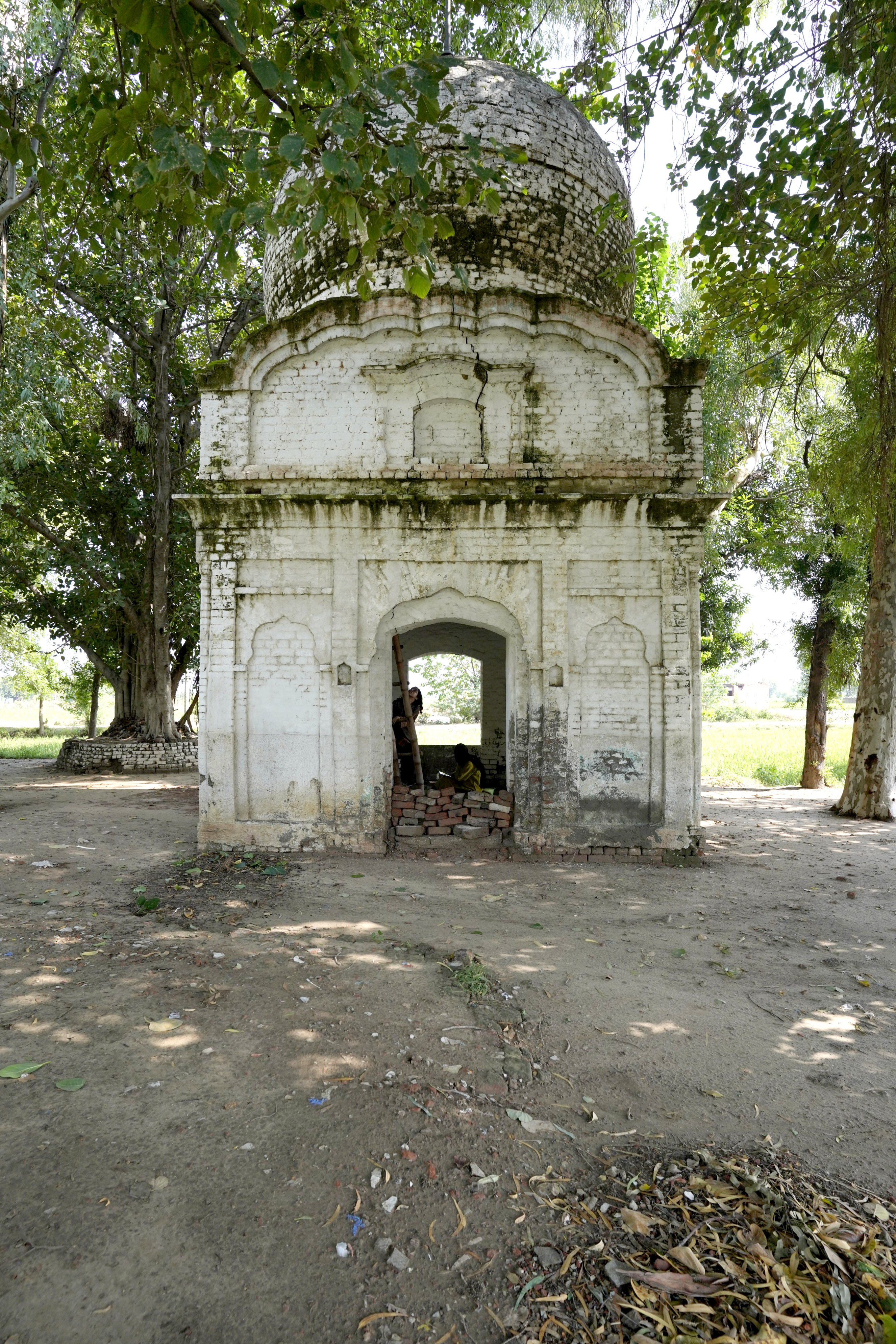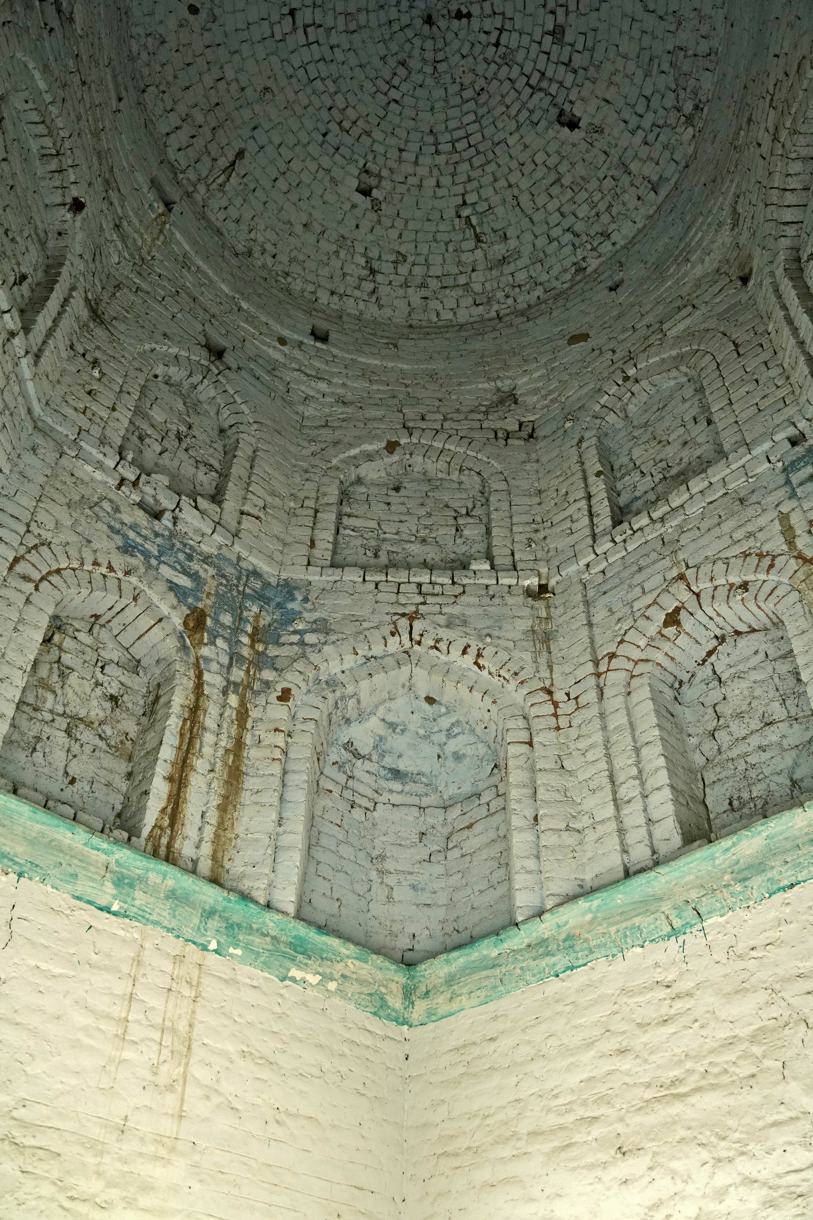 The dome itself exhibits signs of incompletion. The groove around the base of the dome and the rough texture of the bricks in the internal section of the drum suggest that it was originally intended to be adorned with lotus motifs, a common decorative element in Sikh domes symbolizing purity and spiritual awakening. However, these embellishments were never realized, leaving the structure in a raw, unadorned state. This incompletion adds a layer of historical intrigue to the gurdwara, reflecting the interrupted narratives of the region's cultural and religious heritage.